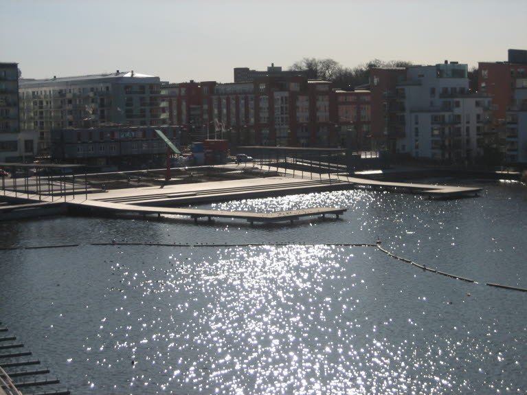 På det utsträckta och böljande trädäcket utanför kan du vila ut eller vardagsmingla med vännerna från området. Och det lär hända massor av spännande i form av roliga butiker, caféer och restauranger runt hamnplanen. Söker du lä, eller kanske lek, bjuder husets intima innergård både på träd, grönska och lekplats.
