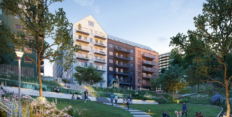 I Kv. Hållbarheten har vi byggt hyresrätter på 1-4 rok. Kvarteret består av 73 hyresrätter och 12 delningslägenheter för ca 120 hyresgäster. Delningslägenheter är byggda tillsammans med Colive. Kvarteret angränsar till den blivande förskolan och till Terrassparken. På innergården finns sociala ytor och ett utegym.