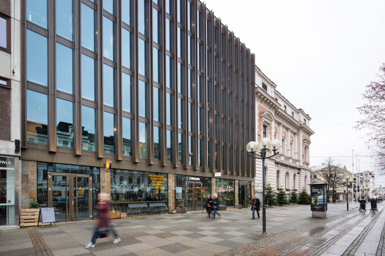 Här skapar vi 1 100 kvm högkvalitativ butiksyta både mot Avenyn och Teatergatan. Möjlighet att hyra mindre yta som är anpassad till din verksamhet finns. Kontorsytorna på sex våningsplan om ca 4 100 kvm är uthyrd. Mot Teatergatan tillför vi även 35 nya lägenheter.