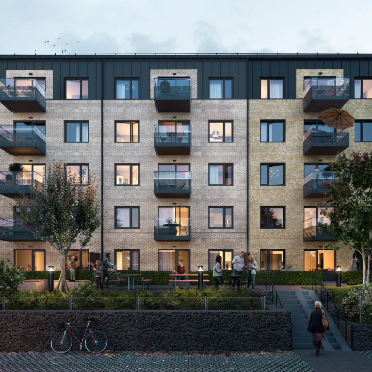 Planteringarna på innergårdarna är i stort sett klara och hyresgästerna har börjat kunna nyttja sittplatser och lekutrustning.