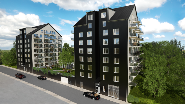Många av lägenheterna har fin utsikt över staden då majoriteten av lägenheterna har balkong. Mellan husen finns en härlig innergård som inbjuder till möten med grannarna och en skön stund i det gröna.